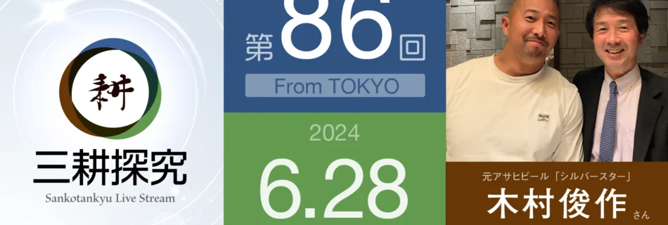 今回は東京からお送りしました。元アサヒビール「シルバースター」で活躍したアメフト選手木村俊作さんをお招きし、現在取り組んでいる環境ビジネス(有機物を加水分解する装置など)についてお話を伺いました。興味深いお話満載でした。 …
