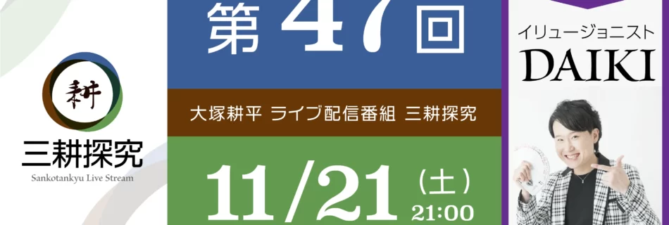 今回はゲストに世界各国で大活躍のイリュージョニストDAIKI(田中大貴)さんをお迎えしてお届けします。 ライブ配信内でカードやロープのマジックも披露。