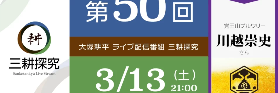 50回の節目のゲストは、「覚王山ブルワリー」を立ち上げ「覚王山ビール」を販売する川越崇史さんです。 地ビール(クラフトビール)の実情と酒税に関わる話題などもお伝えします。