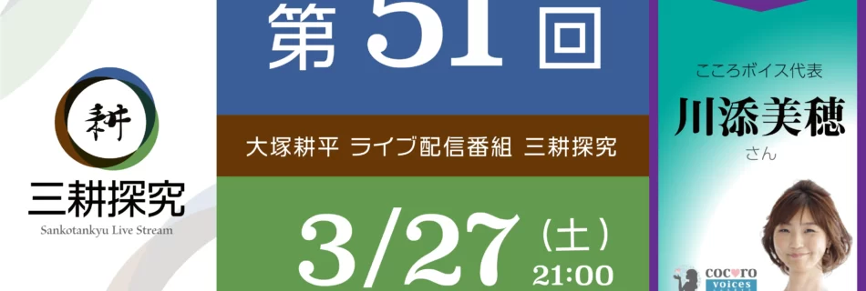 今回のゲストは「こころボイス」代表の川添美穂さん。コミュニケーションのプロとして「こころ」の大切さを伝えていらっしゃいます。 ライフワークは三耕探究のテーマそのものでもあります。