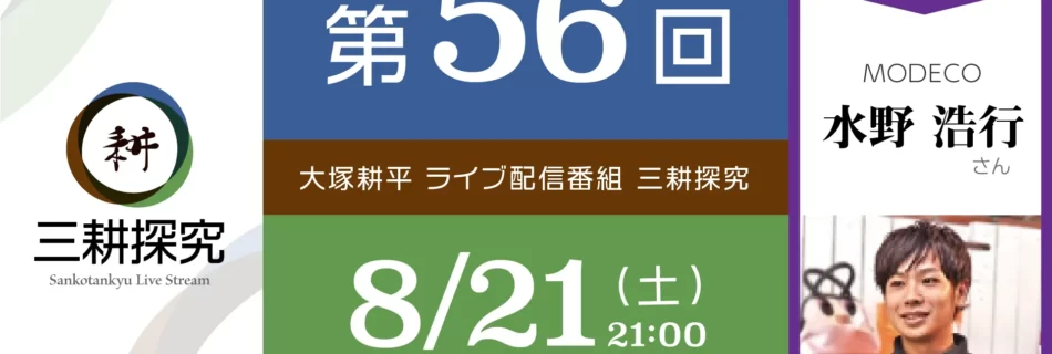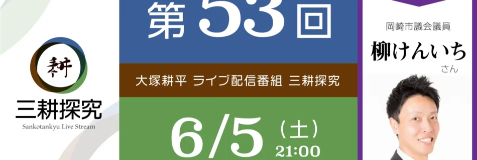 9月30日の21時から「三耕探究」第57回をお送りします。 ゲストは玉木雄一郎衆議院議員です。どんな問題にも詳しい玉木さんですが、一緒に日本の未来について語りたいと思います。 今回はあらたに東京からお送りする予定です。ど …