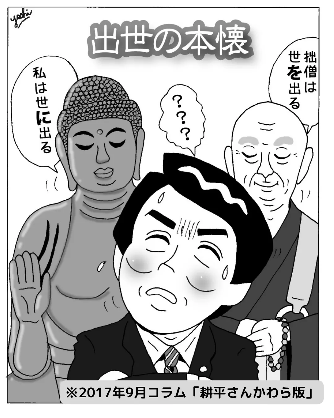さて「出世」も仏教用語です。仏教では「出世」にはふたつの意味があります。ひとつは「世に出る」という「出世」。悩み多き衆生(大衆)を救い導くために、仏がこの世に出現するという意味での「出世」です。