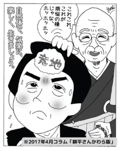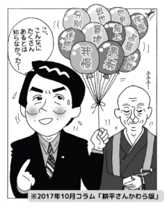 耕平さんかわら版 名古屋市の覚王山日泰寺、知立市の弘法山遍照院で開催される縁日にてお配りしているフリーペーパーの内容を掲載しております。 【第184号】彼岸 2017年10月21日 皆さん、こんにちは。十月、秋本番ですね。朝晩は肌寒… もっと読む » 【第183号】出世 2017年9月21日 皆さん、こんにちは。九月に入りました。季節の変わり… もっと読む » 【第182号】退屈 2017年8月21日 皆さん、こんにちは。夏も佳境です。いかがお過ごしで… もっと読む » 【第181号】遊戯 2017年7月21日 皆さん、こんにちは。いよいよ夏本番。暑さも厳しくな… もっと読む » 【第180号】無常 2017年6月21日 皆さん、こんにちは。紫陽花のきれいな季節になりまし… もっと読む » 【第179号】分別 2017年5月21日 皆さん、こんにちは。ゴールデンウィークも過ぎ、初夏… もっと読む » 【第178号】意地 2017年4月21日 皆さん、こんにちは。いよいよ春本番。とは言え、朝晩… もっと読む » 【第177号】迷惑 2017年3月21日 皆さん、こんにちは。今日はご祥当。お大師様のご命日… もっと読む » 【第176号】愚痴 2017年2月21日 皆さん、こんにちは。節分も過ぎ、春が待ち遠しい季節… もっと読む » 1 … 10 11 12 13 14 … 17 耕平さんかわら版のバックナンバーはこちらからご覧にになれます。