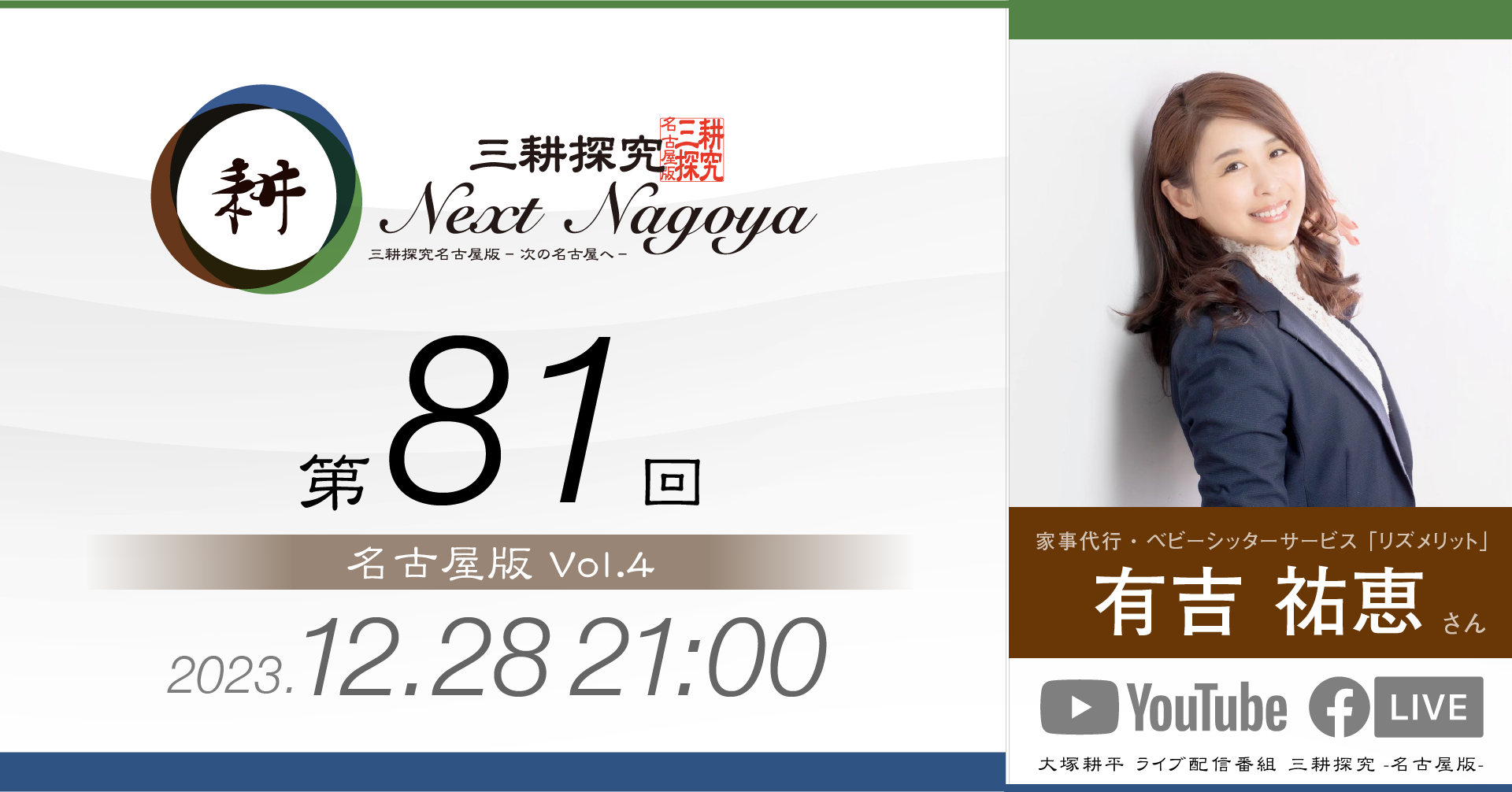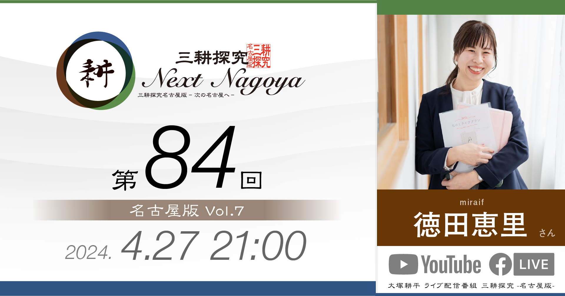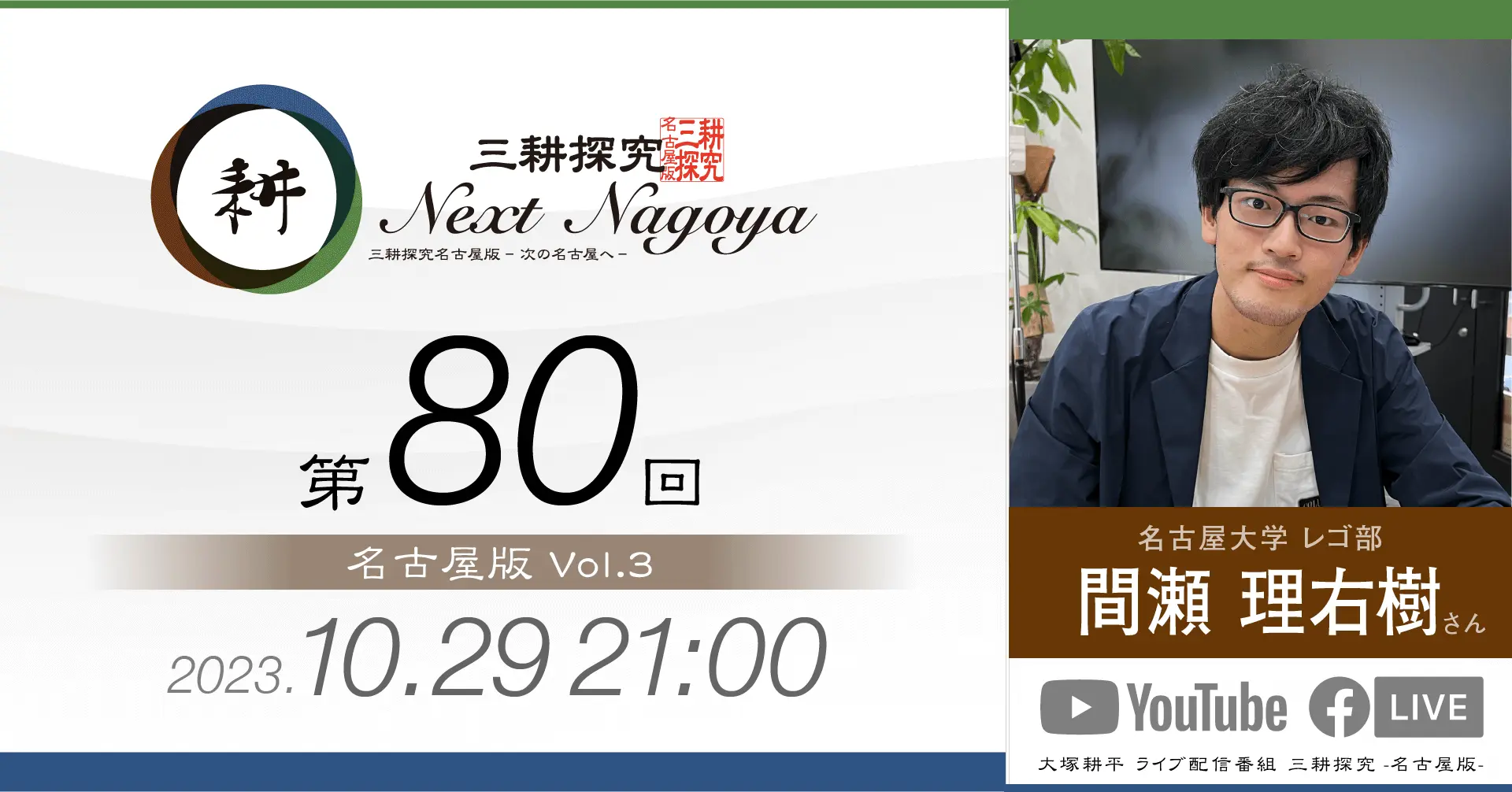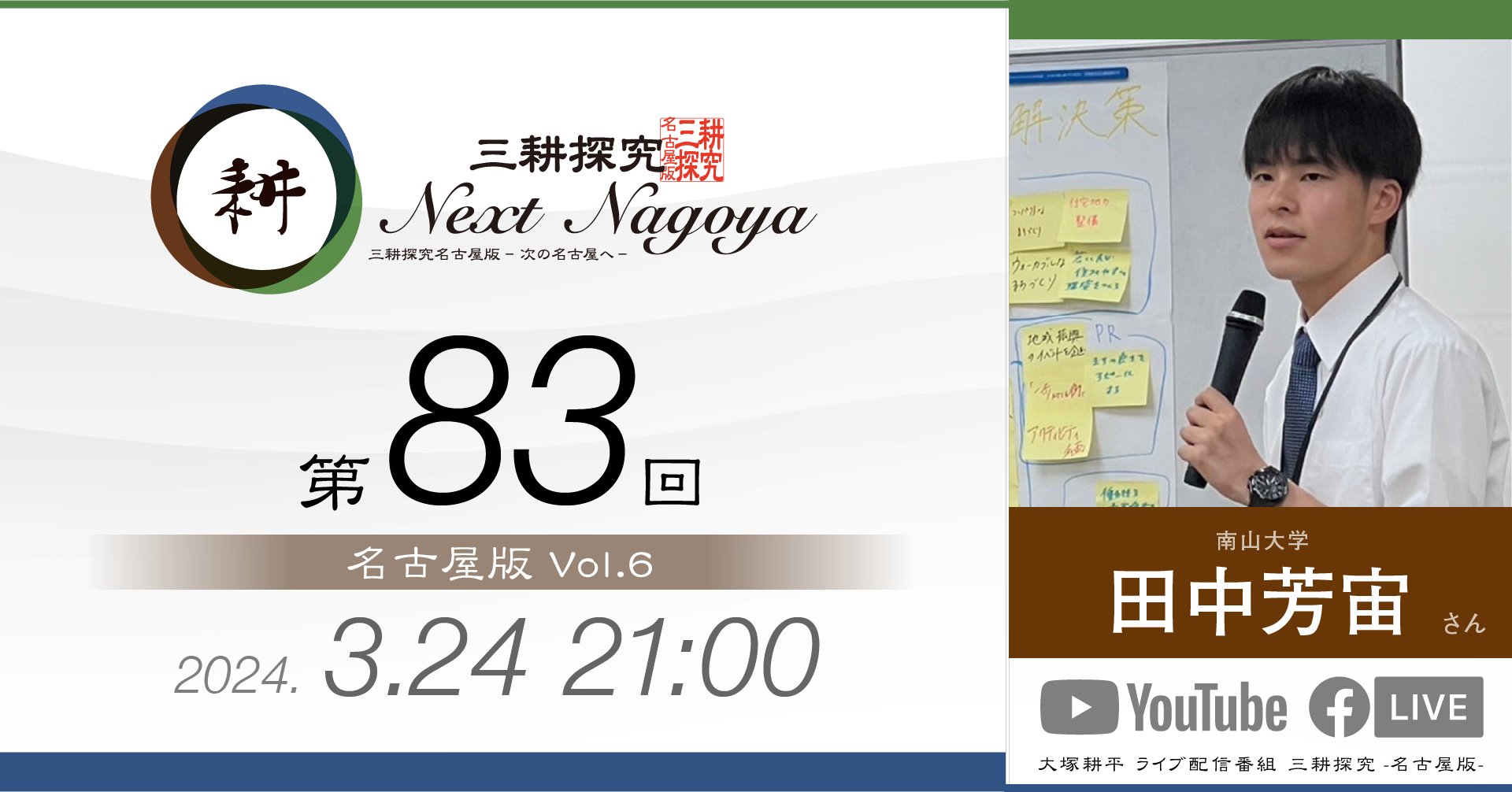 三耕探究(ライブ配信) 日々の活動の中でご縁をいただいた方との対談をライブ配信にてお届けしております。本ページは過去の配信のバックナンバーです。 【第88回】sorc小畑久美子さん 人気LPレコード店「sorc」の小畑久美子さんです… 視聴する » 【第87回】元中日ドラゴンズ投手山本昌さん 今回は元中日ドラゴンズ投手山本昌さんをゲストにお招… 視聴する » 【第86回】元アサヒビール「シルバースター」木村俊作さん 今回は東京からお送りしました。元アサヒビール「シル… 視聴する » 【第85回】愛・LATIN CLUB 日野志穂さん 「愛・LATIN CLUB」会長の日野志穂さんをお… 視聴する » 【第84回】ファイナンシャルプランナー 徳田恵理さん 4月27日(土)21時に配信しました。 今回のゲス… 視聴する » 【第83回】大学生 田中芳宙さん 3月24日(日)21時に配信しました。 今回のゲス… 視聴する » 【第82回】sai-made in japan 宮島麻衣さん 今回のゲストは宮島麻衣さん。 ママ友2人でオリジナ… 視聴する » 【第81回】(株)リズメリット有吉祐恵さん 第81回は「名古屋版」の 第4回目としてお送りしま… 視聴する » 【第80回】間瀬理右樹さん 10月29日(日)21時から配信しました。 第80… 視聴する » 【第79回】間瀬理右樹さん 9月23日(土)21時から配信しました。 第79回… 視聴する » 【第78回】ちくさこども食堂 伊藤正巳さん 今回は「こども食堂」についてお伝えします。 「ちく… 視聴する » 【第77回】べんてんや スージーさん 今回のゲストは2回目の登場となる「べんてんや」のス… 視聴する » 1 2 3 4